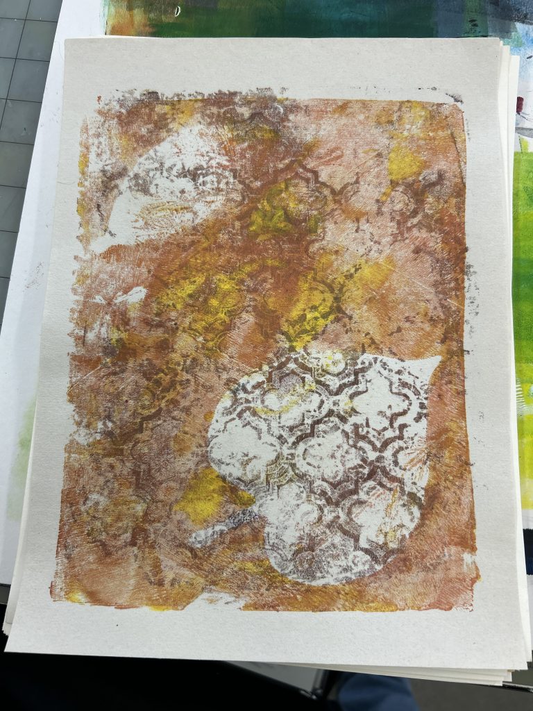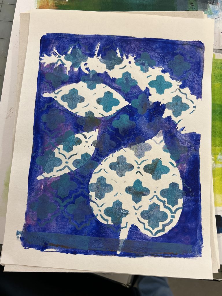 In the meantime, before the car fiasco, I was able to take time to attend a Meredith College Alumnae ‘art event’ and enjoyed making some new mono-prints with fellow art major graduates. It is always an enjoyable day when I can make art.