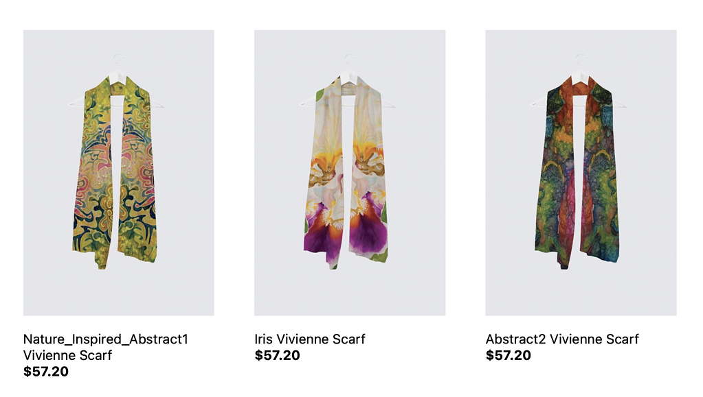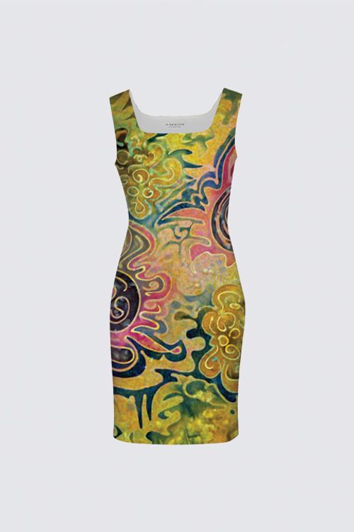 I’d like to share a sample photo of one of my designs! This dress was created using a high resolution image of one of my silk paintings. I uploaded the image to my creative store front and chose the product I wanted the design printed on.
